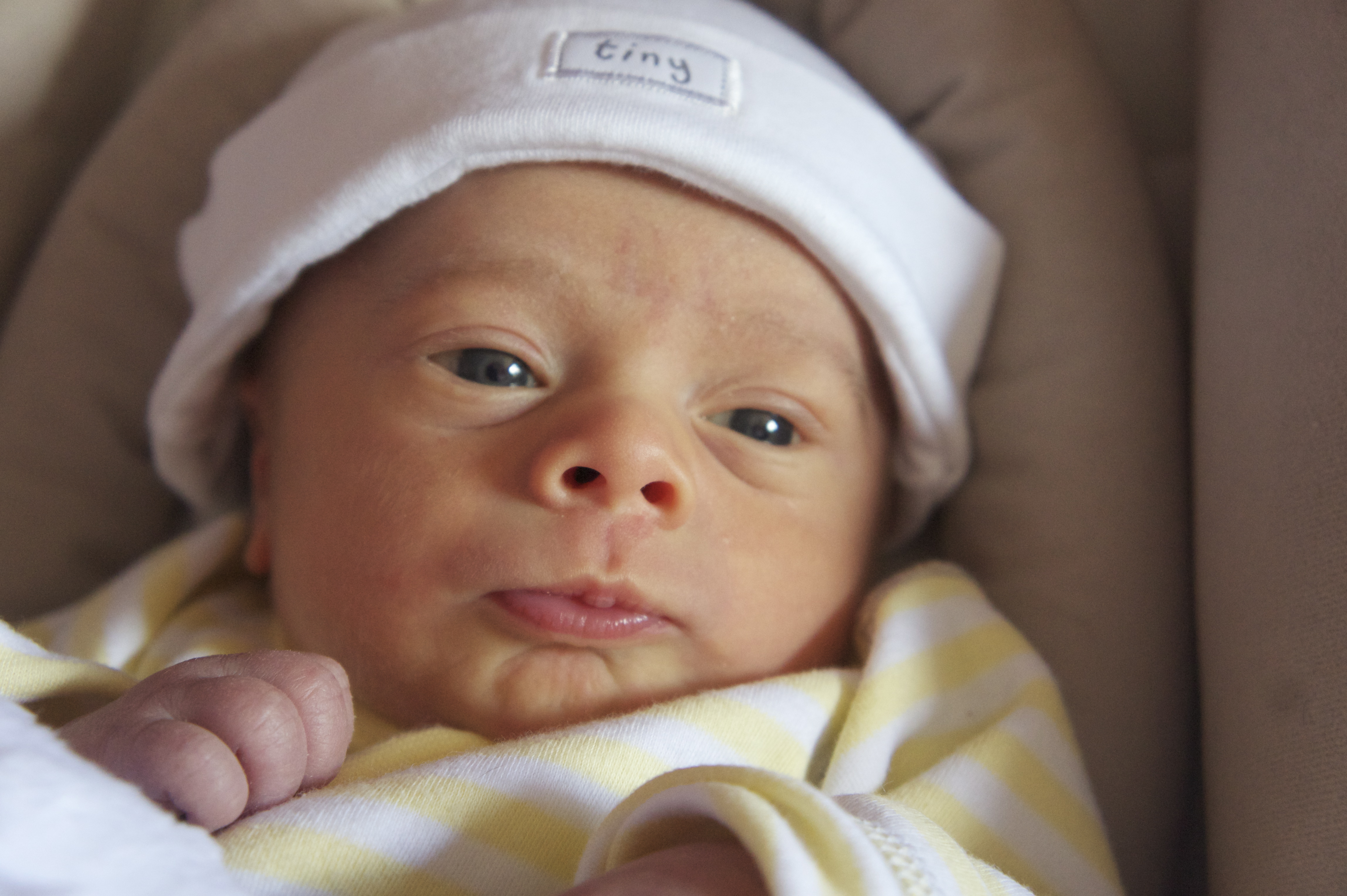 Instantly Dawn said how much Charlie looked like Mike, all I could see was a hairy monkey looking, curled up little thing, who, if you put a hat on, looked more like a garden gnome!  From time to time I can see the resemblance and he definitely has the features of the Parke side, the only two things he has from me is my frown and my appetite!  Charlie is now ten weeks old and has gained almost 10lb in weight weighing a hefty 15lb 1oz earlier this week, he loves his food.  You will see when I upload a picture he has several chins and no neck! Fortunately he has his fathers beautiful crystal blue eyes and a gorgeous smile to match, maybe that comes from me too, oh and the fact he never stops chatting, although Mike was always bossy and in command, so maybe Charlie is heading the same way!